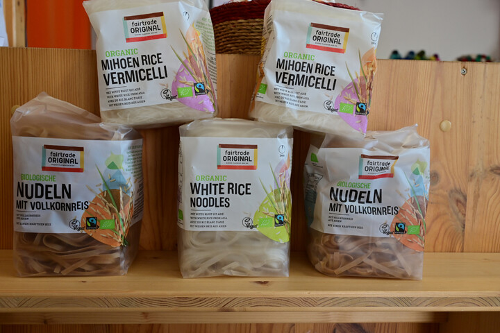 Egal, ob weiße oder Vollkorn-Bio-Reisnudeln, in nur drei Minuten sind sie zubereitet. Die Vollkornvariante hat mehr Ballaststoffe und beide eignen sich sehr gut zu Currygerichten oder zu einer Wok Gemüsepfanne. Den Reis für die Nudeln baut Khun Wilawan gemeinsam mit...