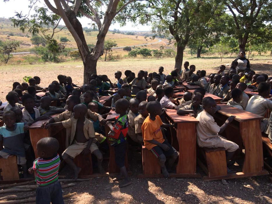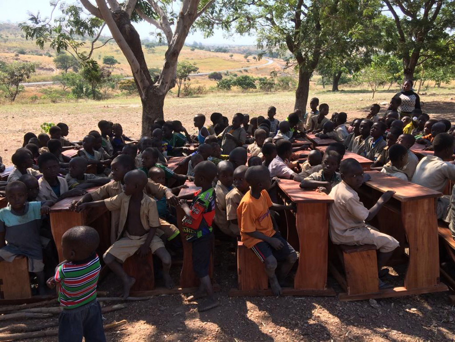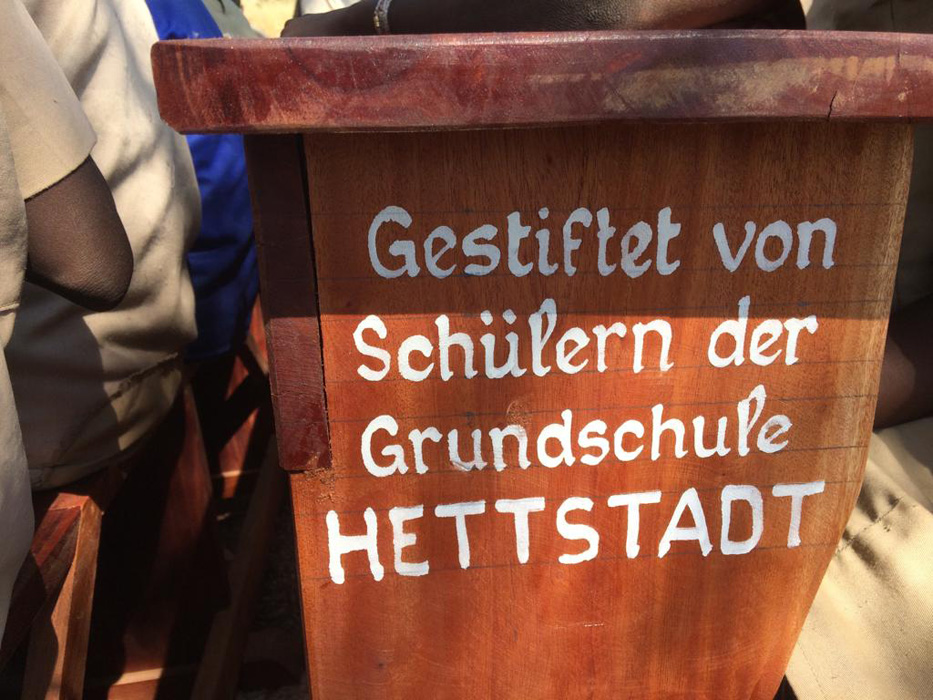 Zusammen mit der Grundschule Hettstadt wurden Schulbänke für den Unterricht im Freien finanziert. Die Bänke wurden in der kleinen Schreinerei – eines der ersten Projekte – hergestellt.