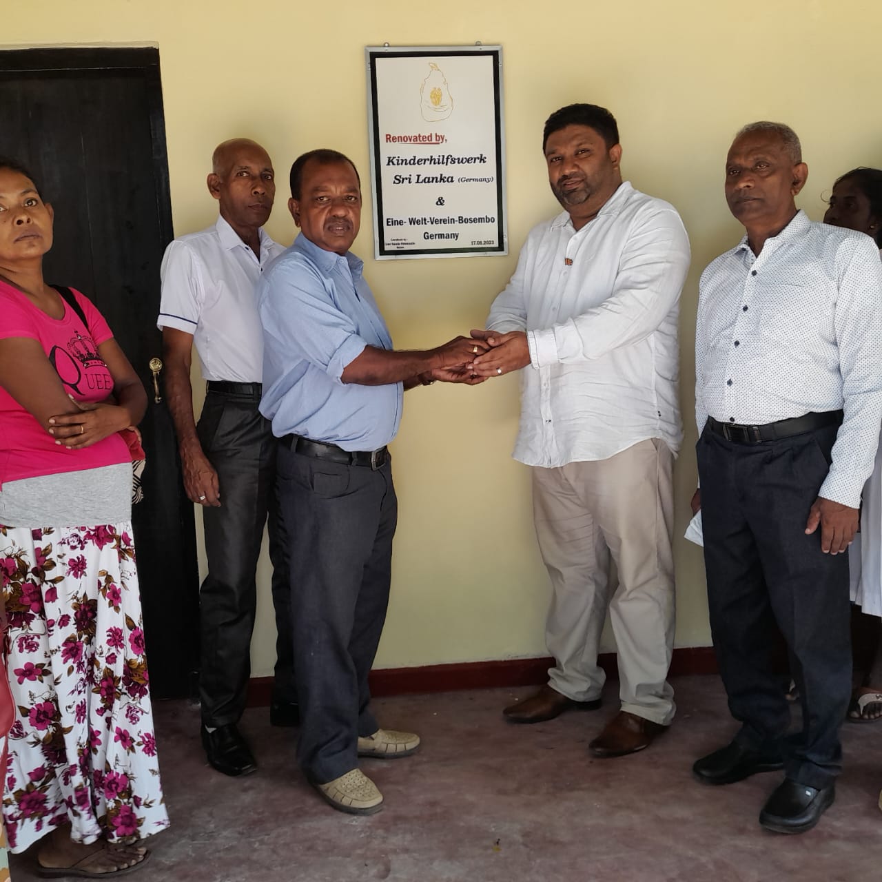 Das Gebäude der Sahana Special School für taubstumme Kinder in Koswana, Kaikawela – ungefähr 15 km westlich von Matale entfernt – wurde innen und außen komplett renoviert. Die alten Wasserleitungen wurden getauscht und neue Waschbecken installiert. Die morschen Dachbalken wurden alle erneuert und eine neue Dacheindeckung montiert. Auch die Küche ist jetzt wieder im vollen Umfang in Betrieb. Die Gesamtkosten lagen bei knapp über 3000 €. Der Bruder von Mali Weidner hat die ganzen Transportkosten und Bauleitung ehrenamtlich übernommen. Finanziert wurden die Renovierungsrabeiten vom Kinderhilfswerk Sri Lanka und dem Eine-Welt-Verein bosembo.