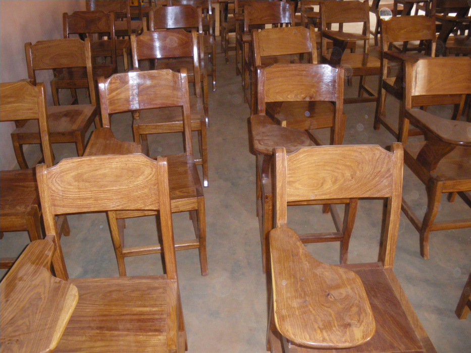 Die Tische und Stühle wurden in der kleinen Schreinerei, die durch die finanzielle Hilfe des Eine-Welt-Vereines bosembo entstand, hergestellt.